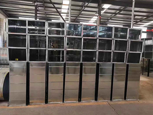 共板法蘭主要由角碼、法蘭夾,及與風管一體相連的法蘭連接,這種形式風管雖然造價較低(減少了角鋼用量,減少了制作角鋼法蘭的人工用量),但是實際應用起來不如角鋼法蘭牢固,漏風量也較大,且必須通過機床進行加工,手工制作幾乎不能實現它的制作,通常只應用于新風系統,空調系統等,排煙系統還是經常用角鋼法蘭連接的風管。但是人防工程是絕對不允許用共板法蘭連接。
